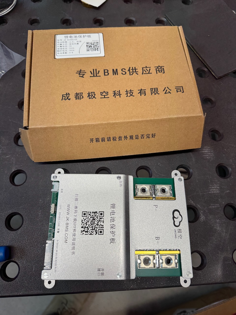 To make sure the cells stay nice and prismatic, we need a BMS. The two most popular brands seem to be JK and JBD. My bundle included a JK 200 amp model with 2A active balancer.
