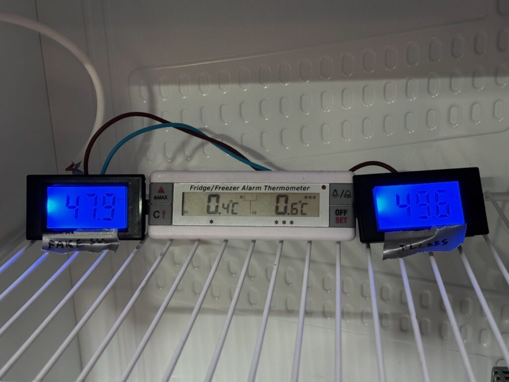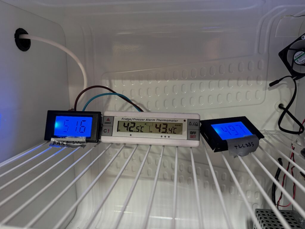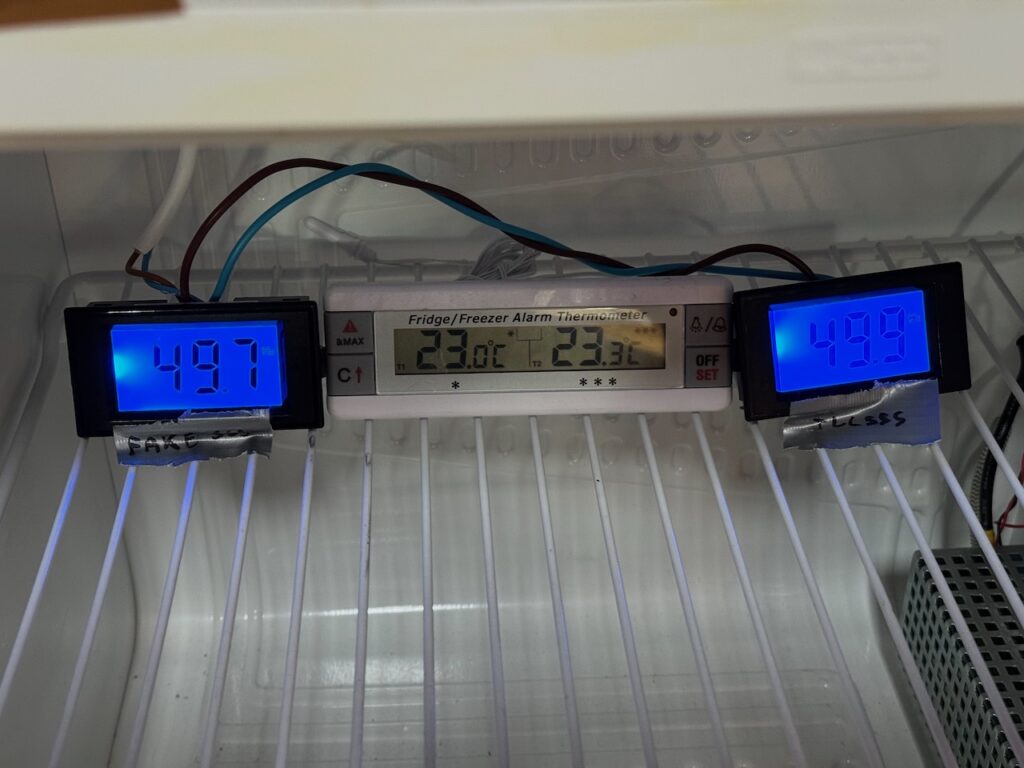 My modified D69-Hz seemed much more stable, so I put it in the Hayburn Labs environmental chamber alongside an unmodified one and a thermometer.