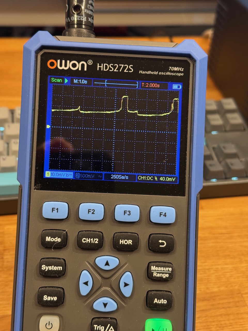 Connecting a scope in roll mode across one of the emitter resistors, I could see the quiescent current jumping around at random.
